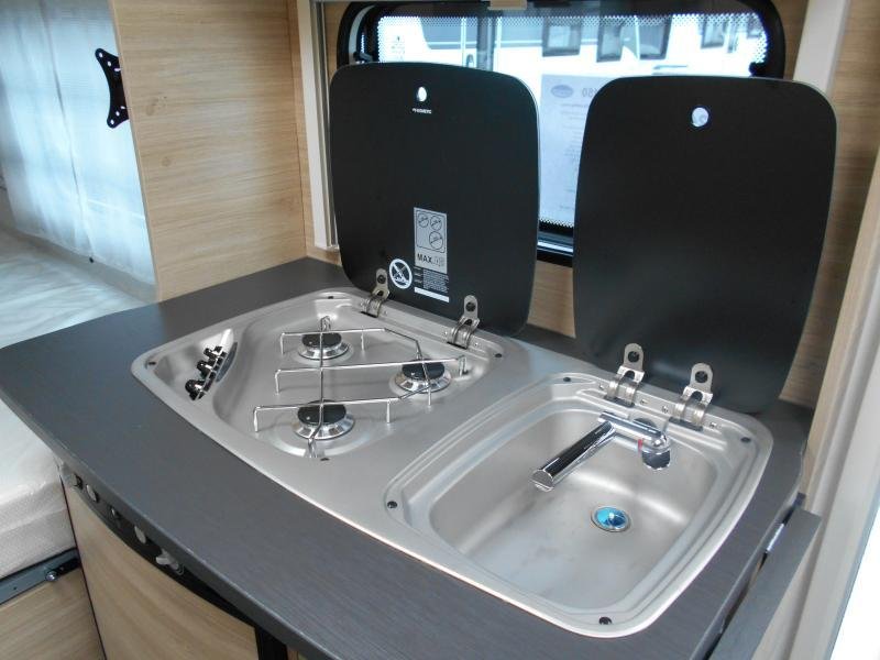 Grijze polyester wanden,disselafdekking,verzwaarde uitdraai steunen,lichtmetalen velgen,reservewiel met houder,dakreling,buitendeur met raam,ringverwarming,hordeur,tv beugel,rookmelder,luxe “tournon”bekleding,opbergvakken voor tijdschriften,extra bovenkastjes,accuvoorbereiding en tussen bed.